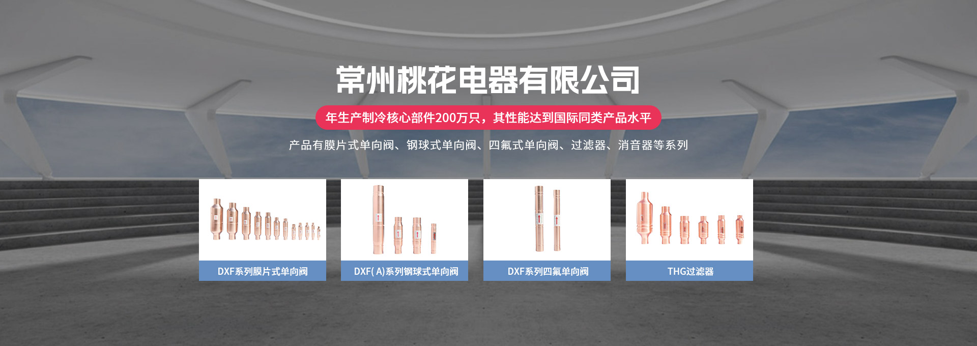常州桃花電器有限公司地處中國長江“金三角”之稱的上海至南京高速公路、城際高鐵、常州高新經濟技術開發區路段,交通便利、技術力量十分雄厚。它是集研究、開發設計、制造和經營制冷核心部件的企業,主要生產中央空調上使用的制冷部件。產品有膜片式單向閥、鋼球式單向閥、四氟式單向閥、過濾器、消音器等系列。年生產制冷核心部件200萬只,其性能達到國際同類產品水平。  企業擁有先進的科學技術、國際先進的生產加工設備和精密的檢測儀器,并已通過ISO9001質量體系及CE認證,公司歷史悠久,2000年起,經過長期積累、沉淀,經驗豐富,從而保證了產品的高質量、高性能、高耐用性。企業產品在國內外市場具有較高的知名度,深受眾多中外品牌制冷客商的好評。主要客戶有約克、麥克維爾、美的、開利、特靈、頓漢布什、清華同方、天加等.并出口北美、歐洲、東南亞等地區。  高品質產品是企業的保證,周到服務是合作友誼的承諾,企業本著“求